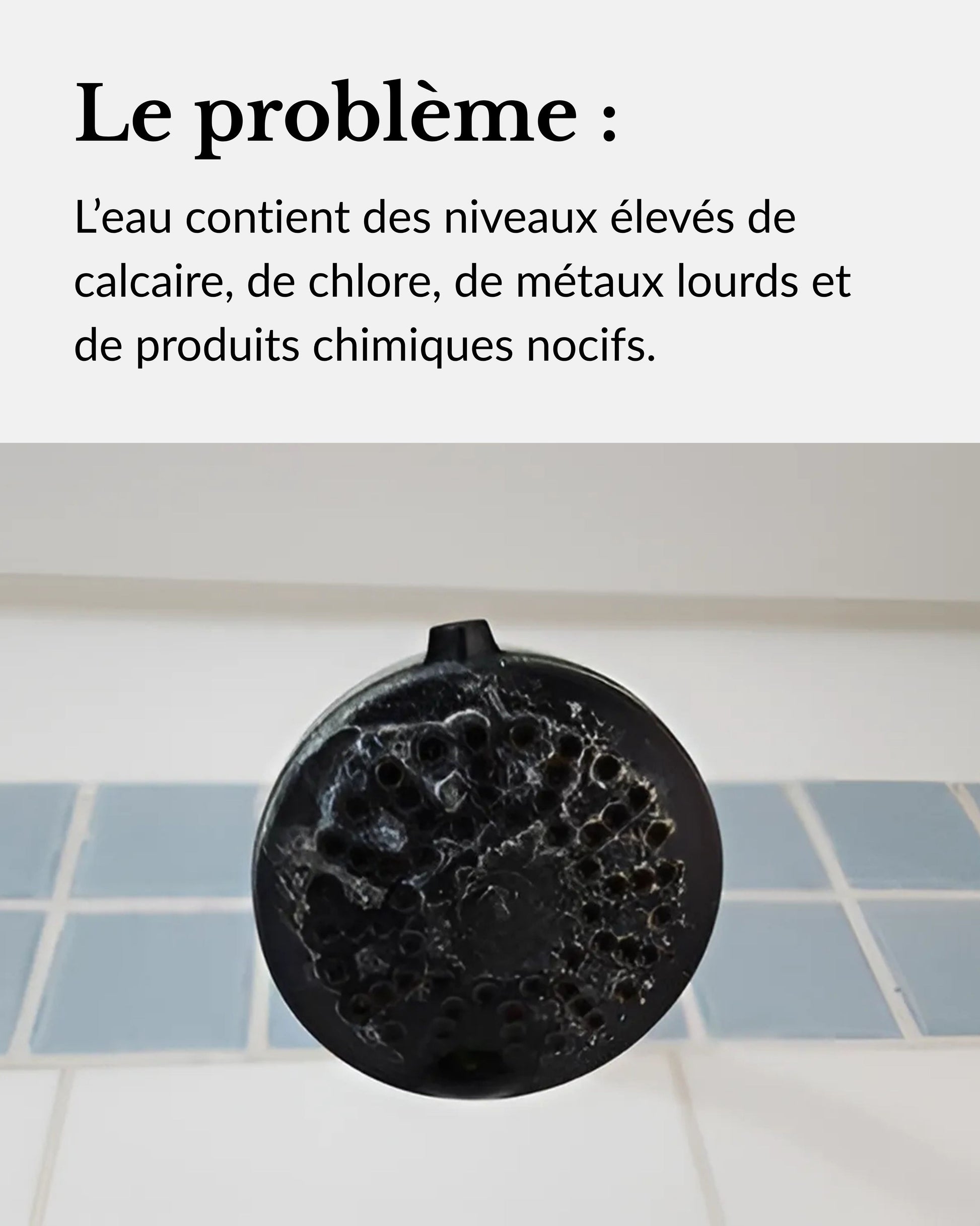 Mais si l’eau que vous utilisez est calcaire, chlorée ou chargée en impuretés, ces soins sont en grande partie annulés sous la douche.